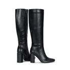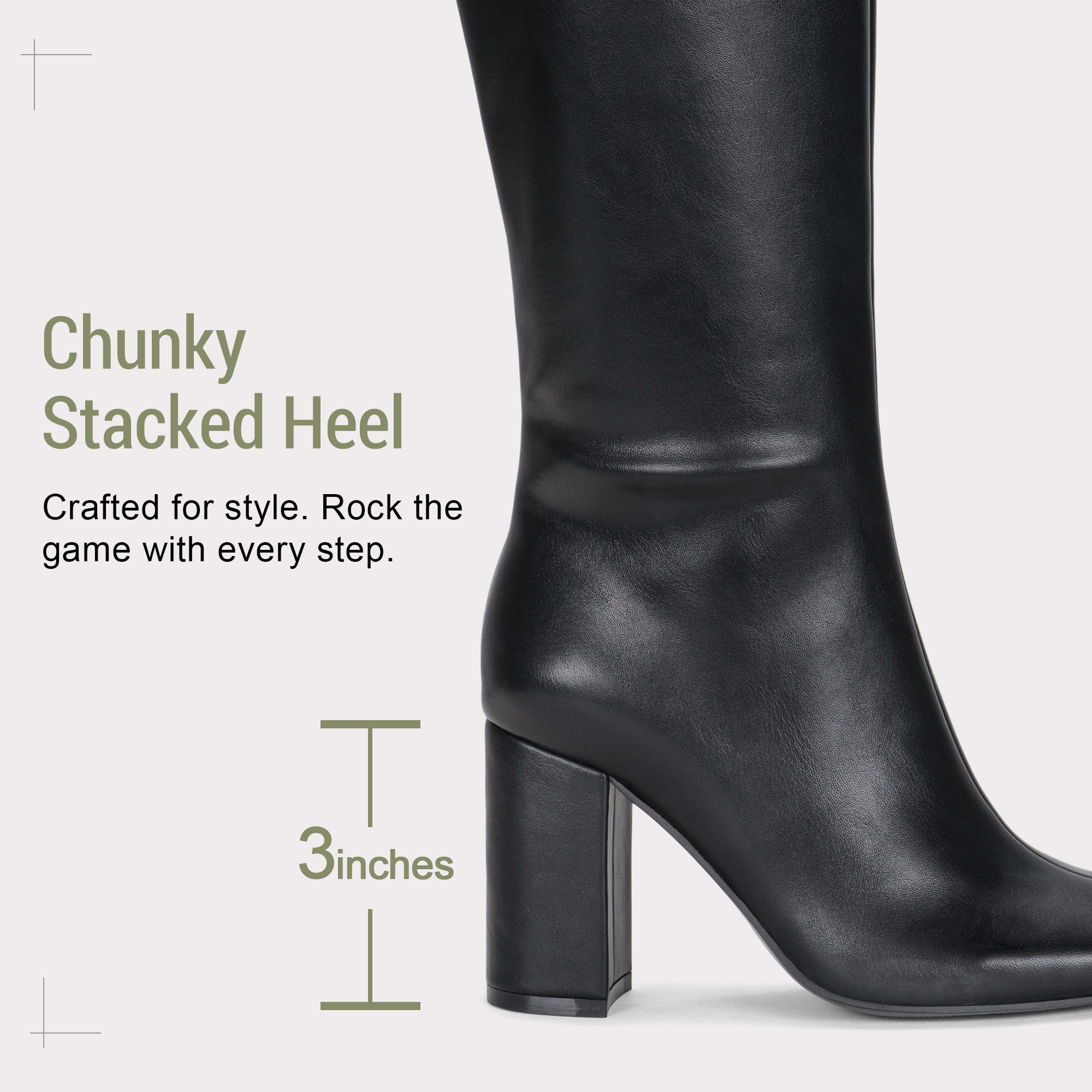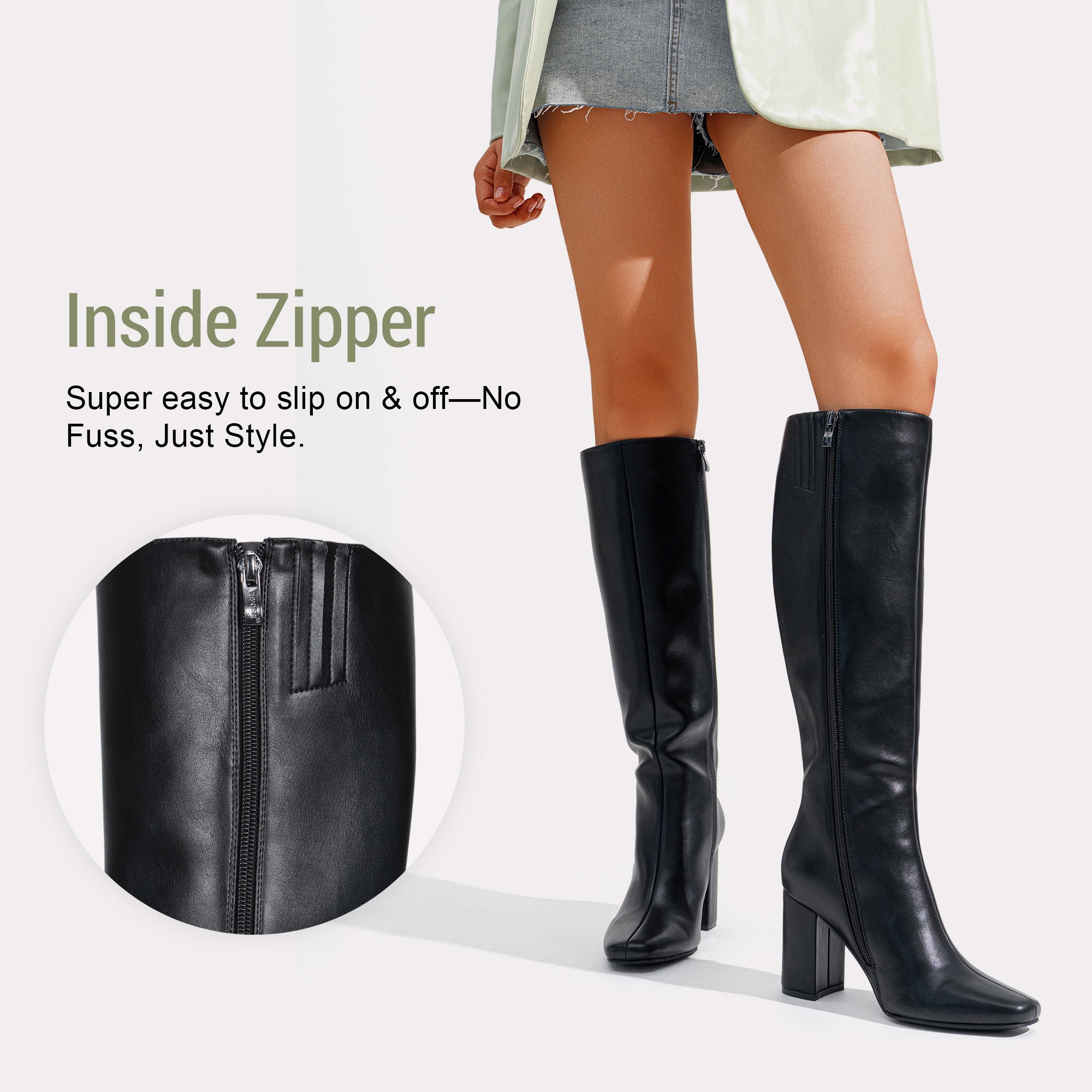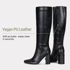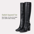 - ๐๐ญ๐ฒ๐ฅ๐ ๐๐ง๐ ๐๐ฎ๐๐ฅ๐ข๐ญ๐ฒ:Classic Elegance Designed with smooth black faux leather, these knee-high boots capture timeless sophistication. The material is easy to maintainโsimply wipe away spills or dirt with a damp cloth, no special care required