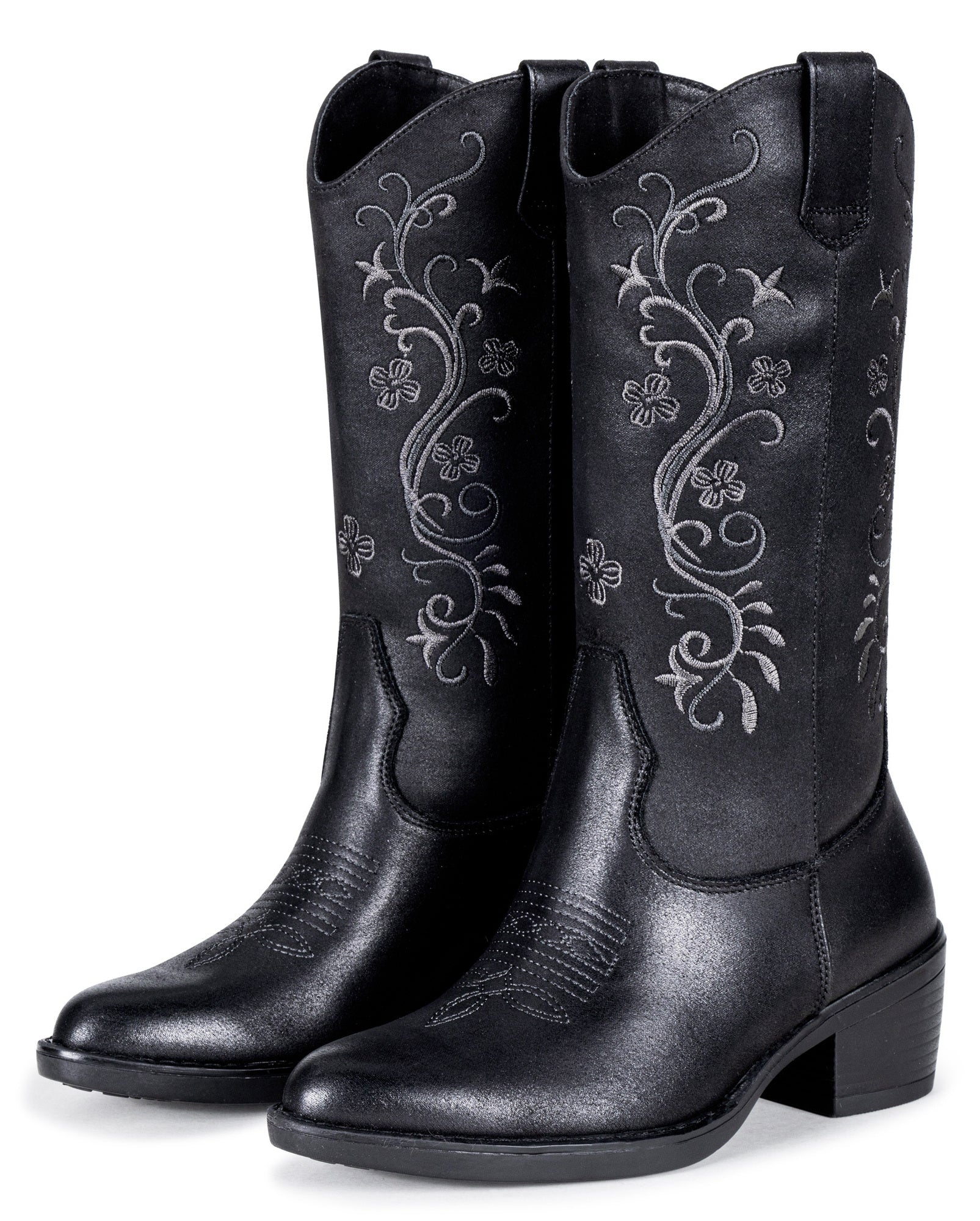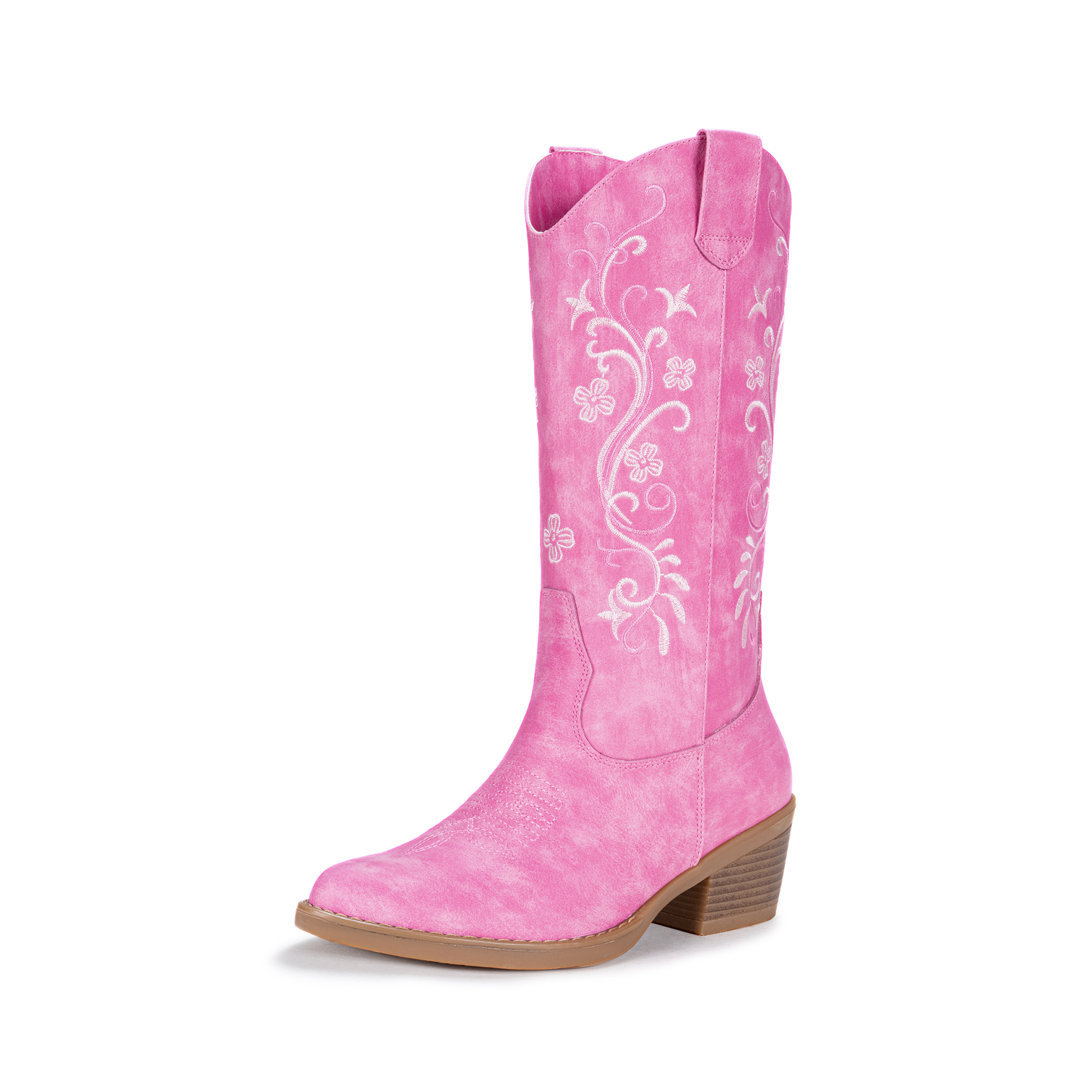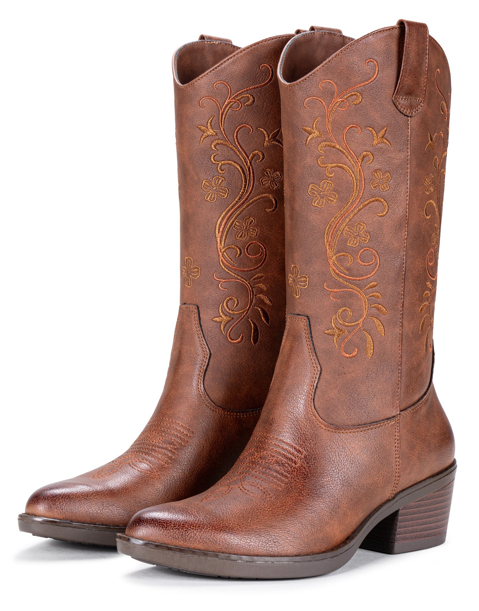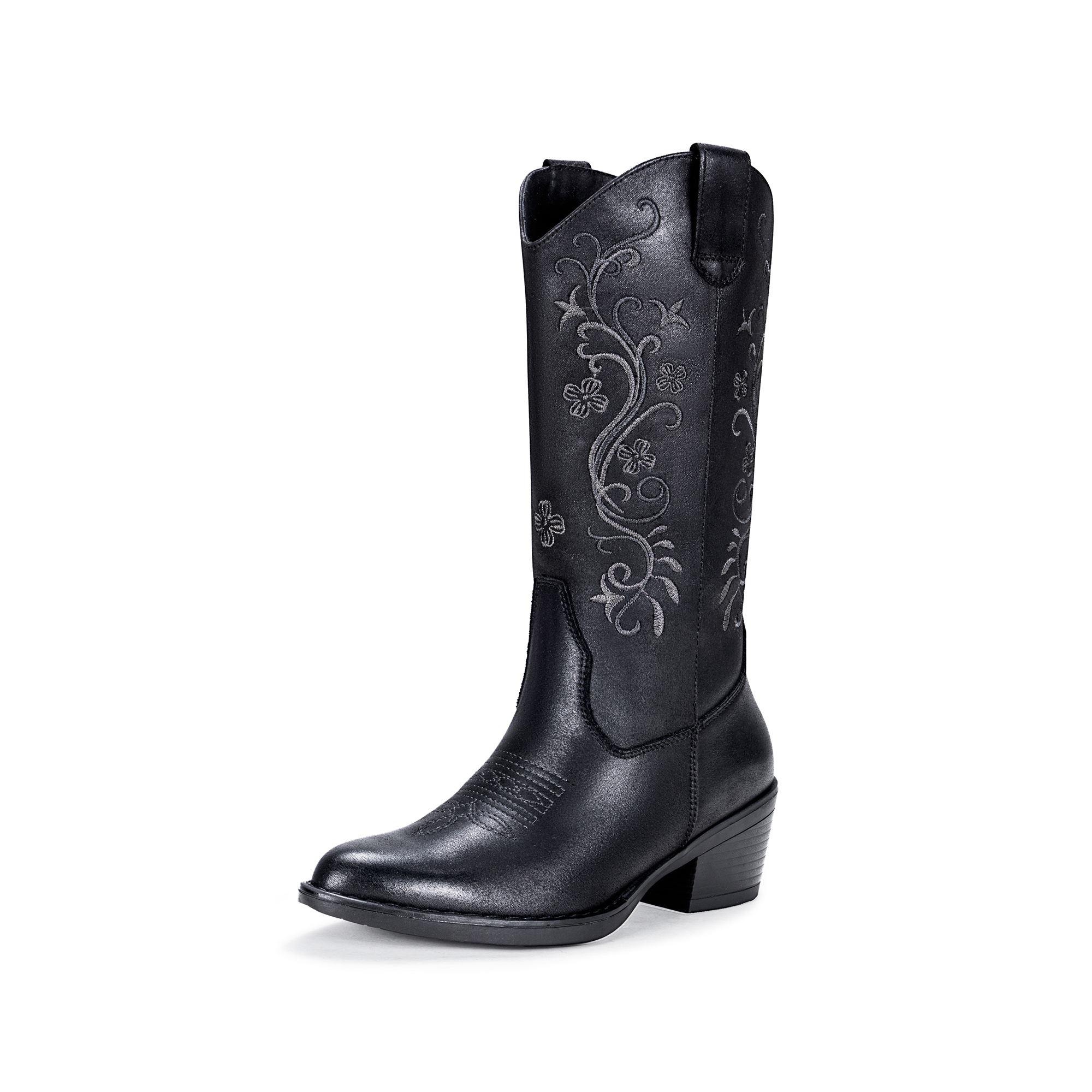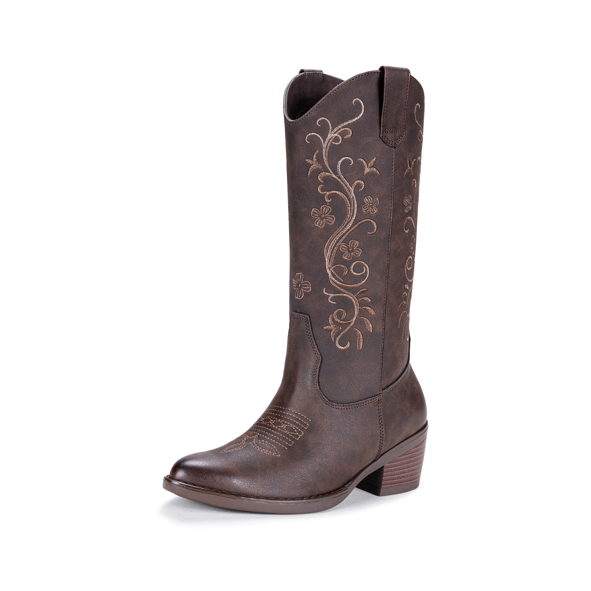 Vepose Women's Cowboy Boots, Embroidered Western Mid-Calf 9802 Cowgirl Boots, Pointed Toe Pull on Boots with Chunky Heel