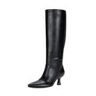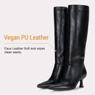 Vepose 9525 Women's Pointed Toe Kitten Heeled Knee High Faux Leather Boots