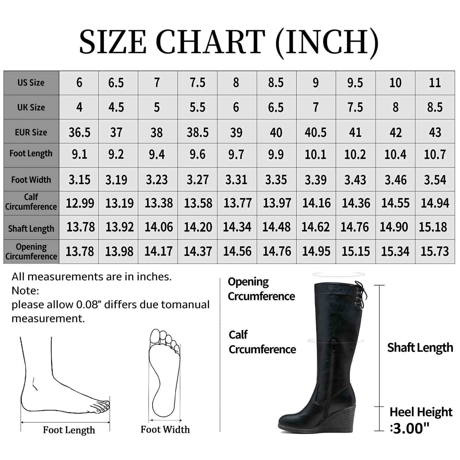 • 【Details】 Boot opening measures approximately 13.2" around. Shoe Height measures approximately 17.2".Heel height approximately 3".