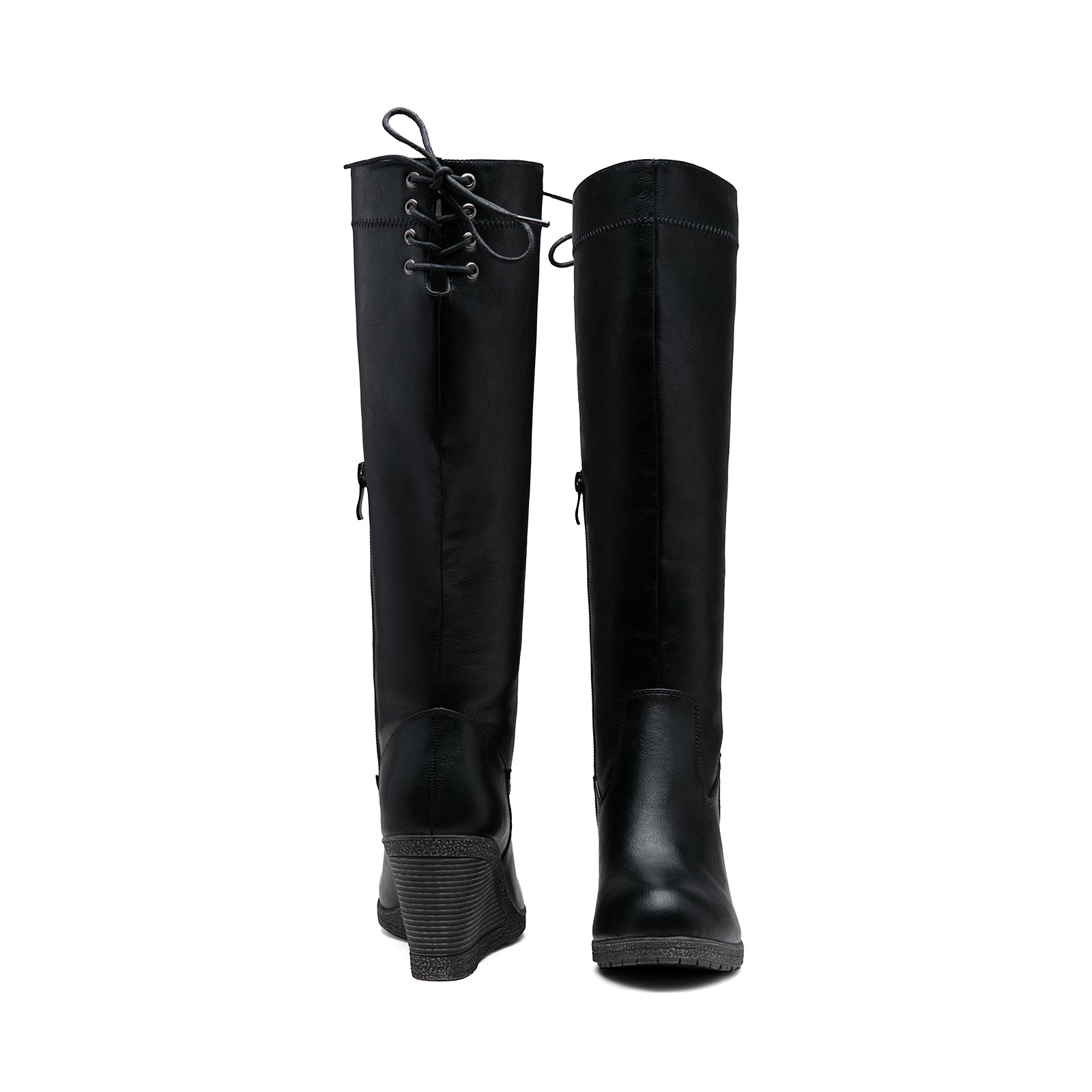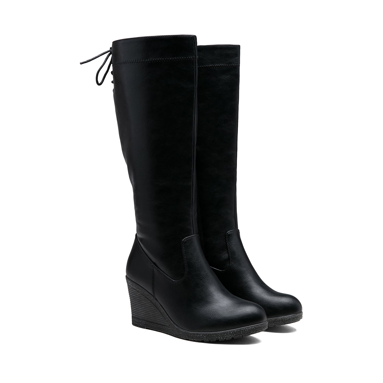 • 【Design】 The women's wedge heel boots are round toe, which is both fashionable and casual.