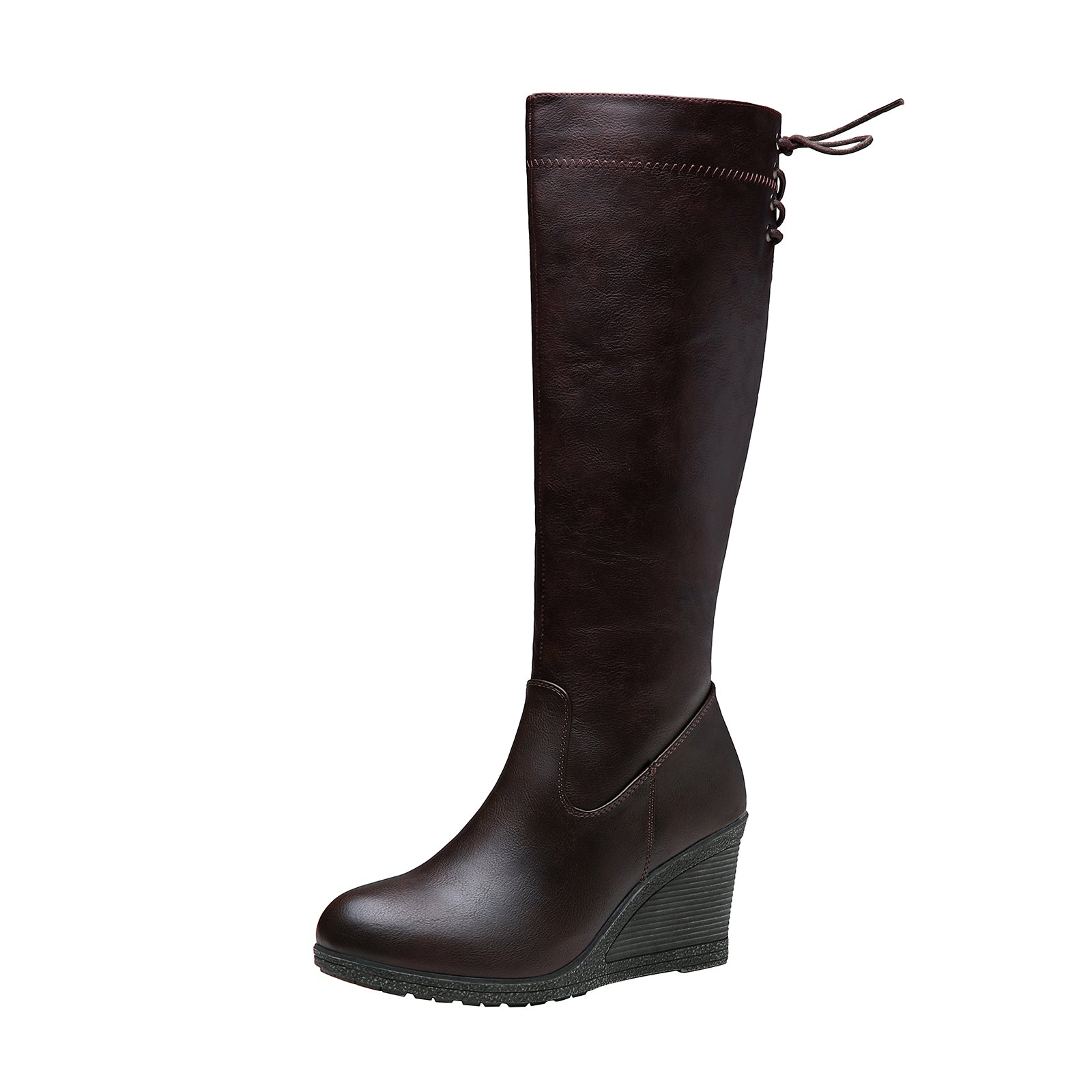 Vepose Women's 9651 Knee High Boots Fashion Wedge Heel Calf Boot for Women