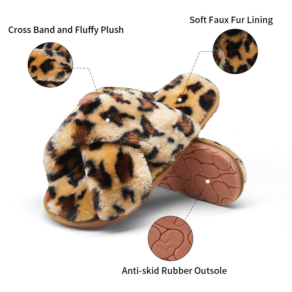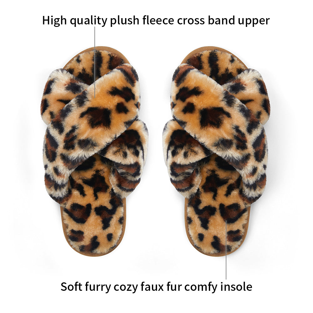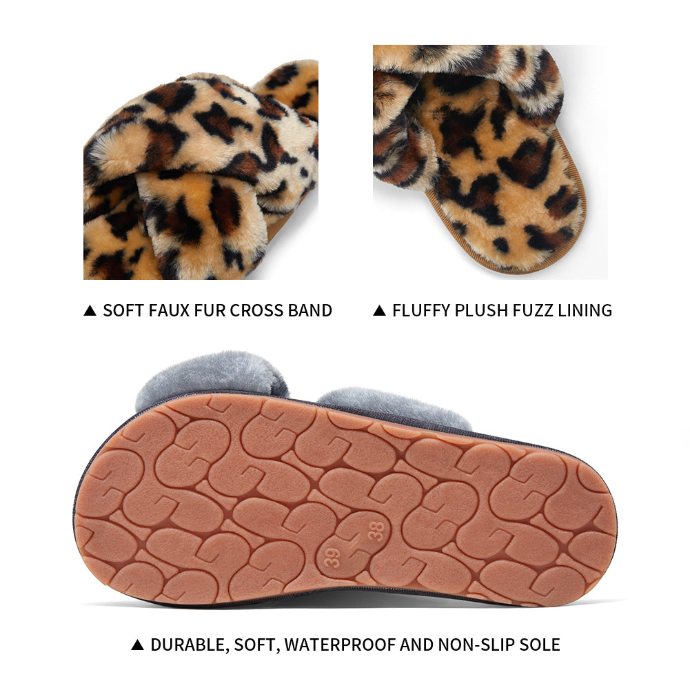 Vepose Women's 801 Cross Band Slippers Soft Plush Furry Open Toe Fur Slides Fuzzy Fluffy Slip on House Shoes Indoor Outdoor Slippers