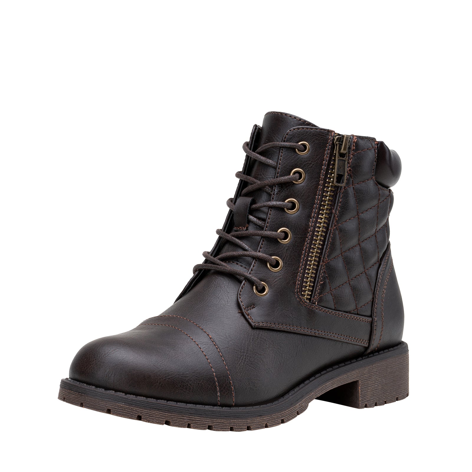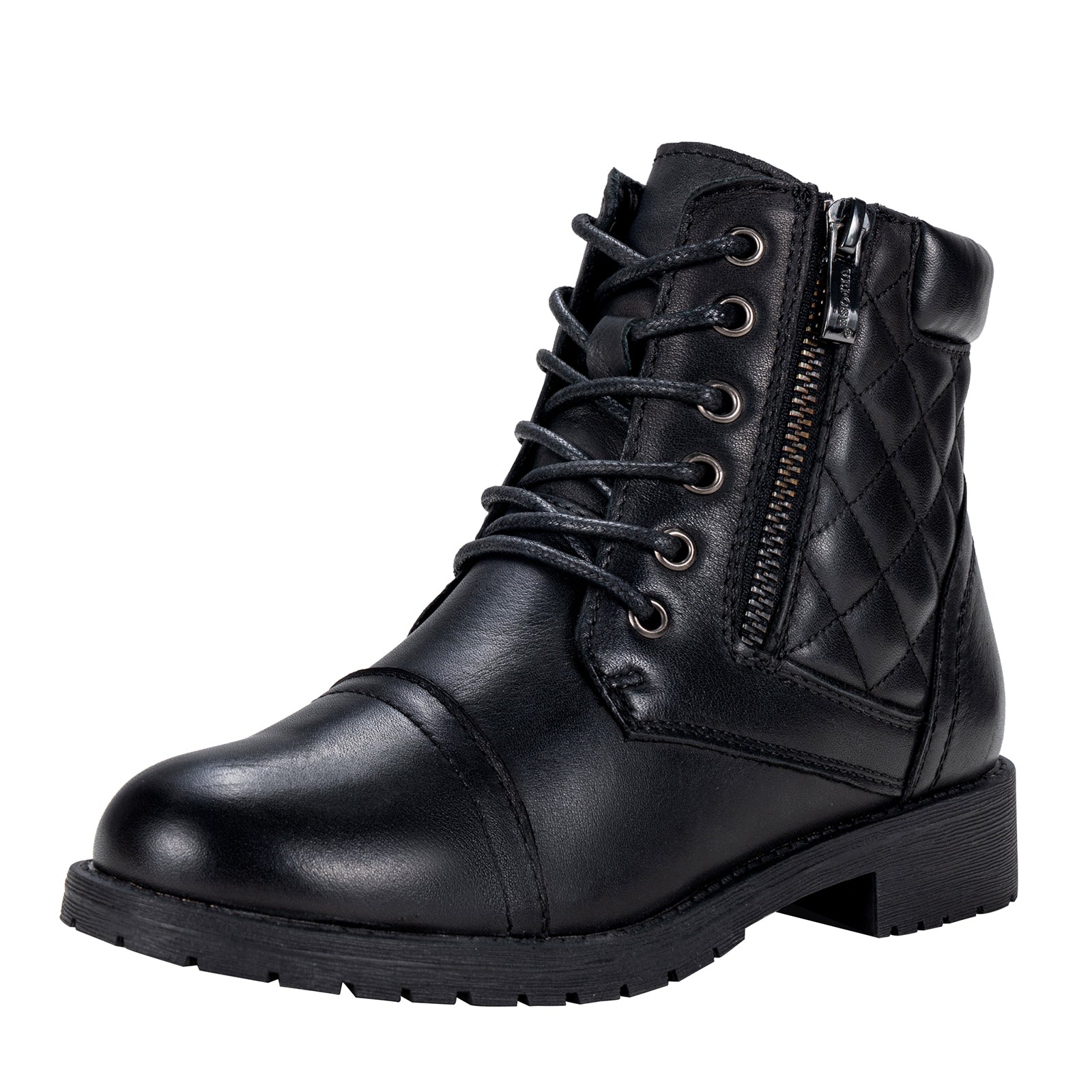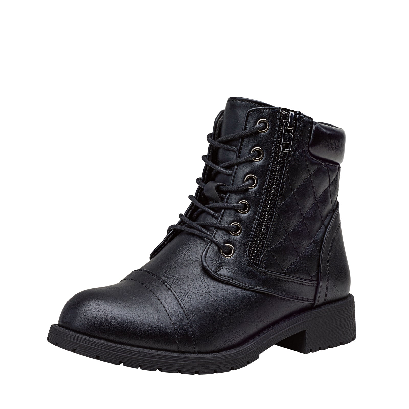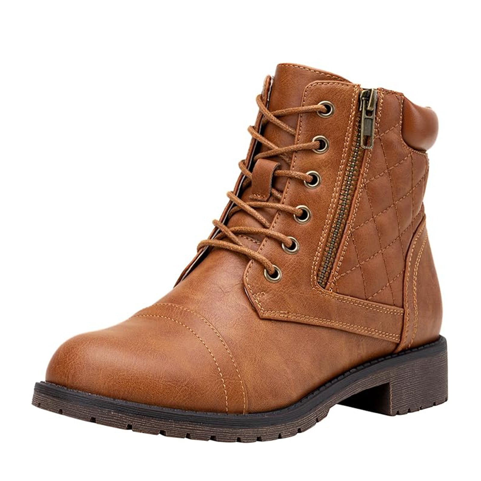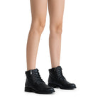 - Classic ankle booties combat style lace-up front with metal eyelet.