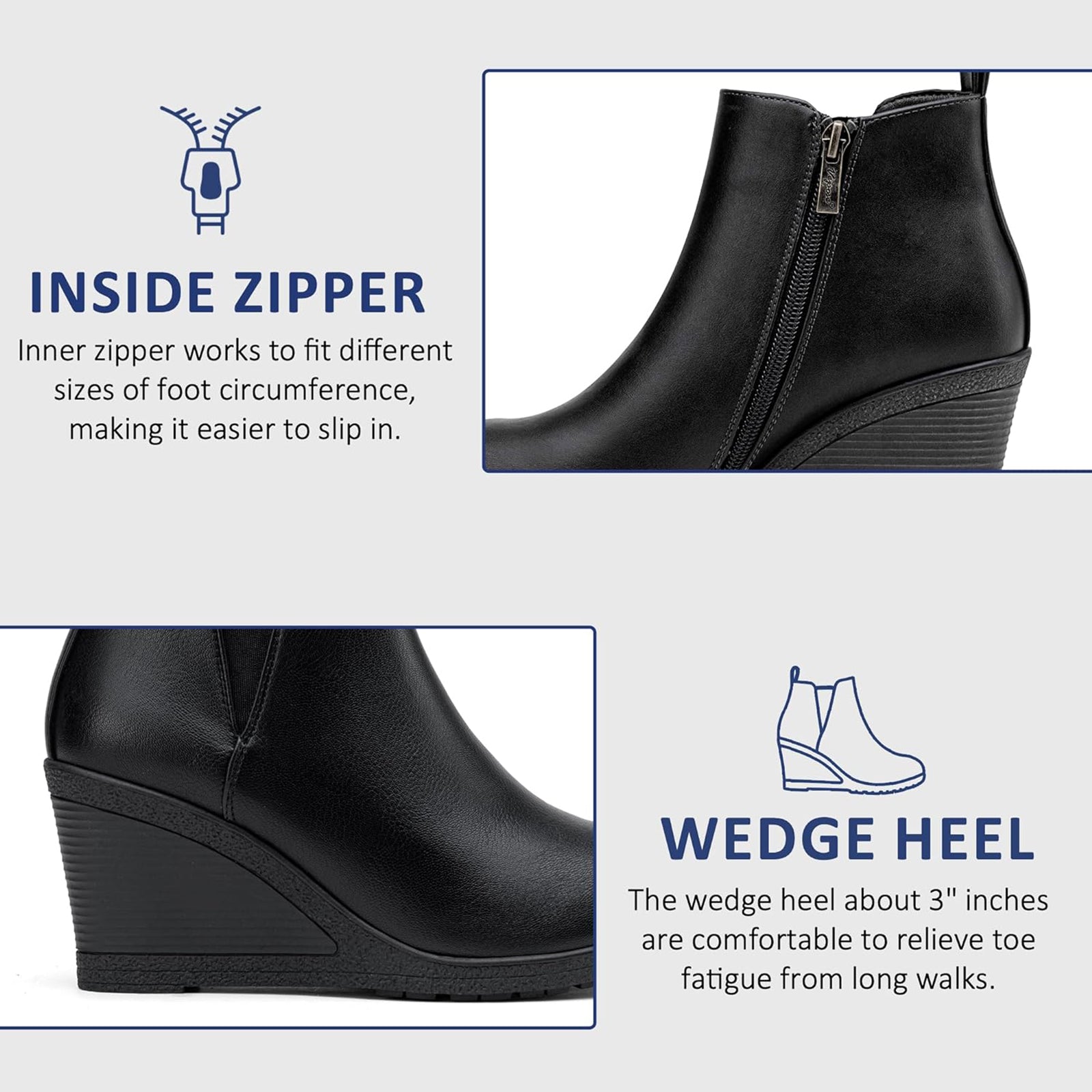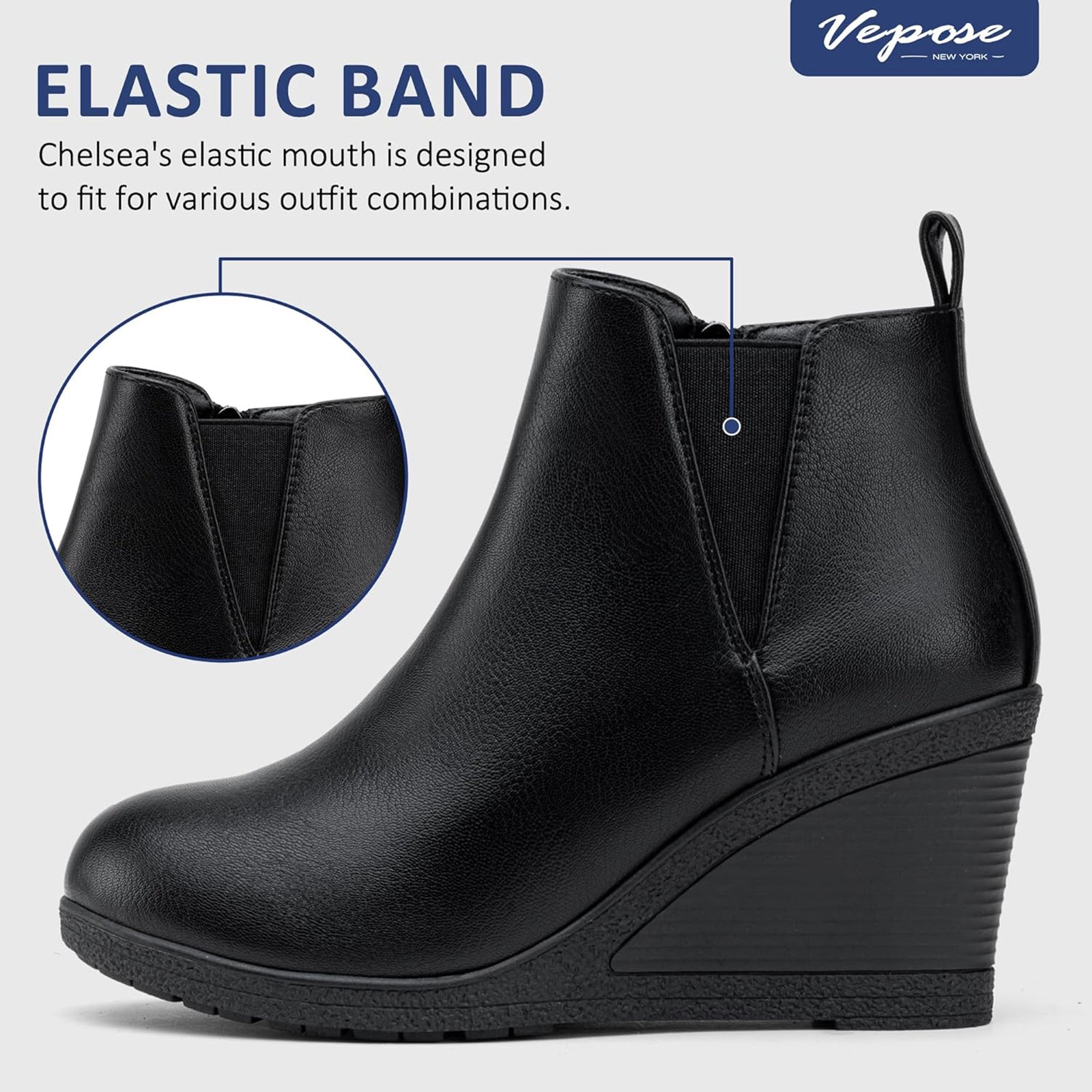 - The fashionable wedge heel and chelsea-style design are perfect for various outfit combinations, such as pairing them with jeans, casual evening dresses.
