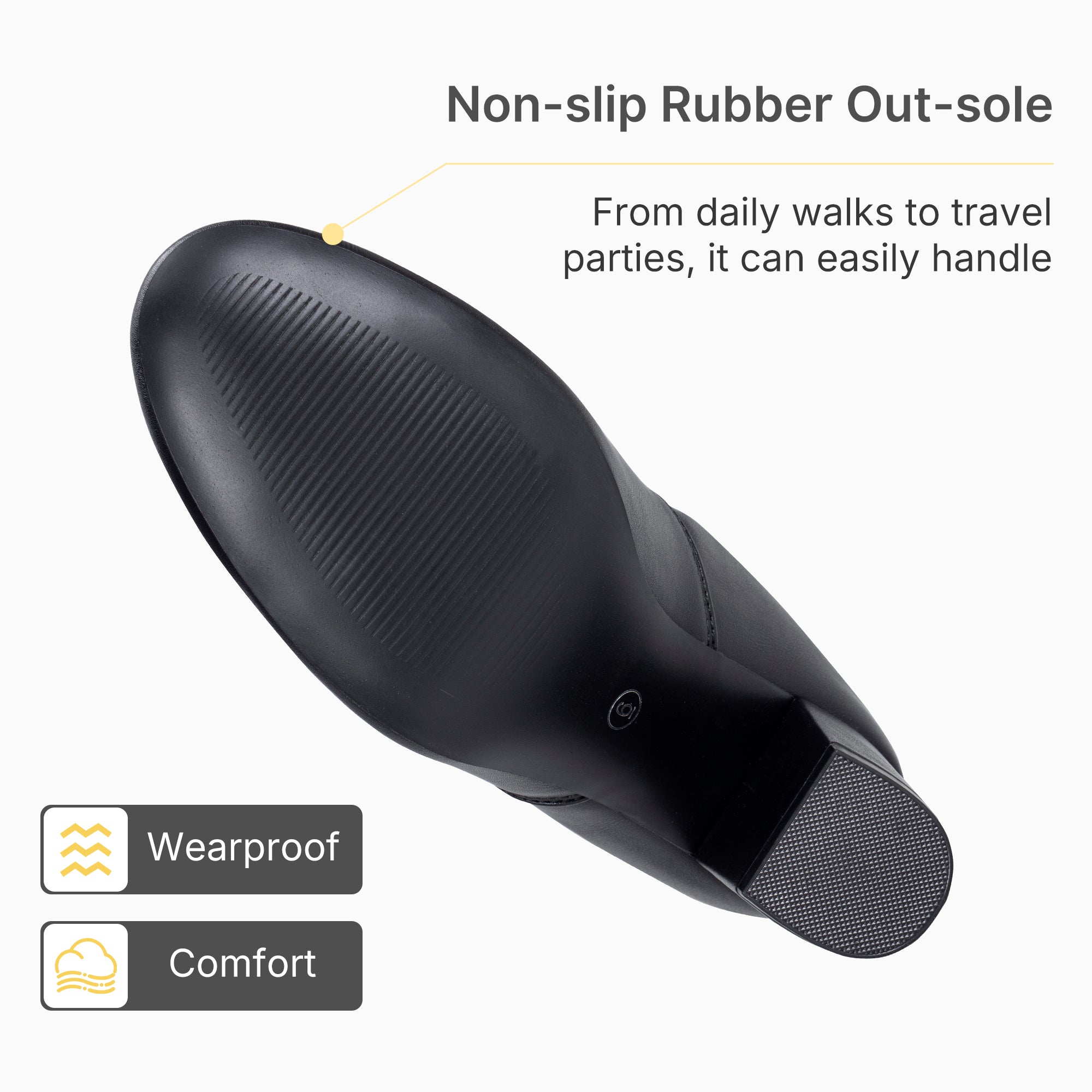 - Mid heel for a comfortable wearing experience after a long time walking and standing