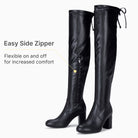 Vepose Women's 991 Suede Boots Over the Knee High Vegan Chunky Heels Side Zipper Adjustable Opening Shoes