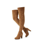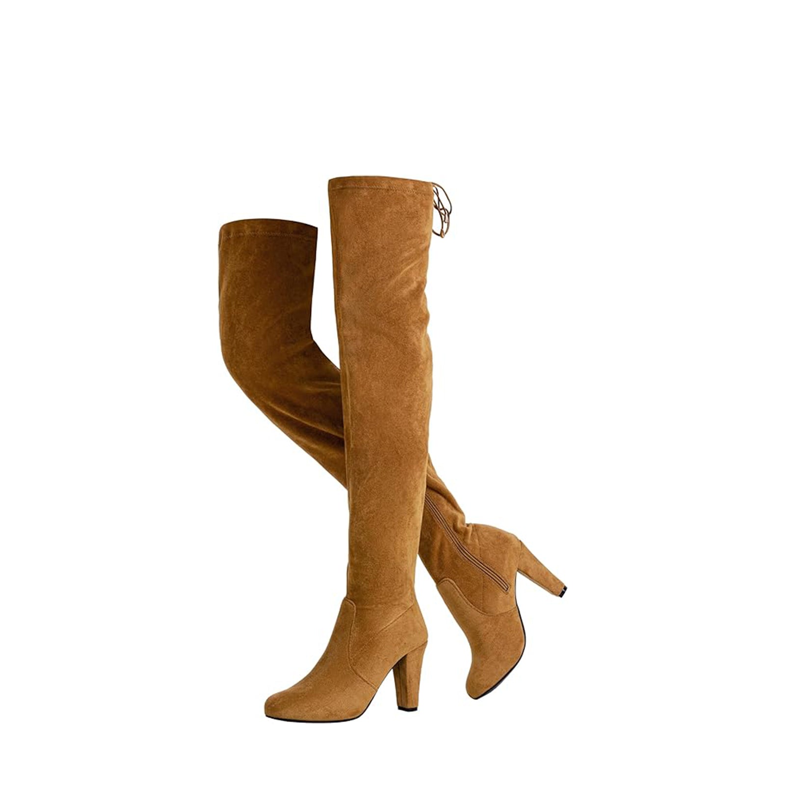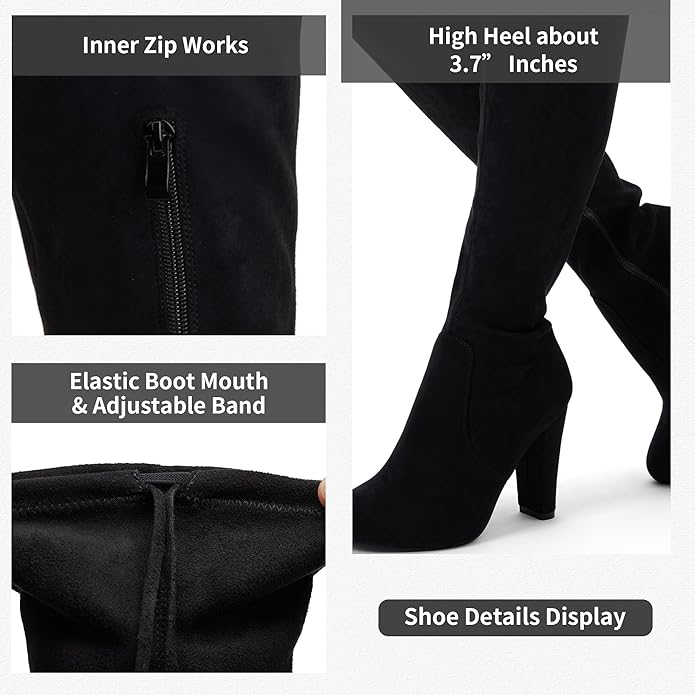 - Thigh high boots for women with inner zipper and good elastic suede materials for easy pull on and off