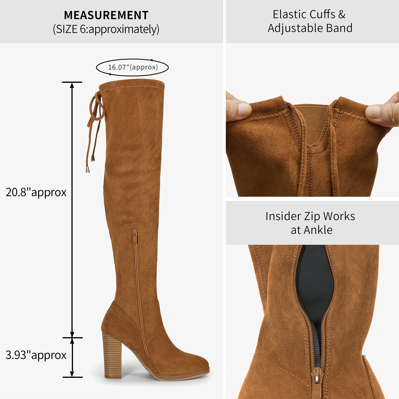 - These over-the-knee boots are made of high-quality stretch fabric,soft and comfortable,the long zipper make them easy on and off.