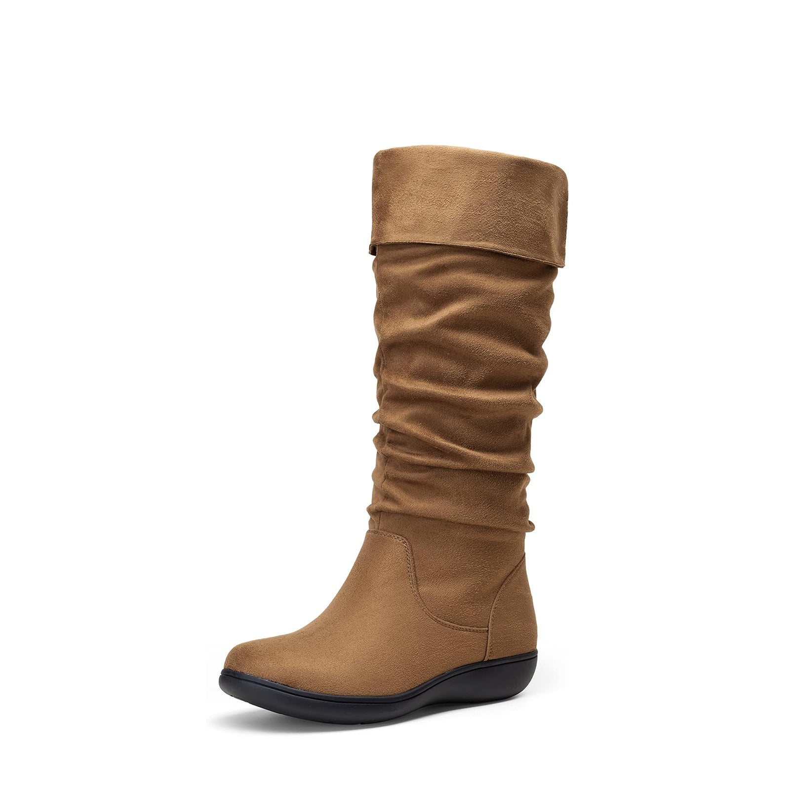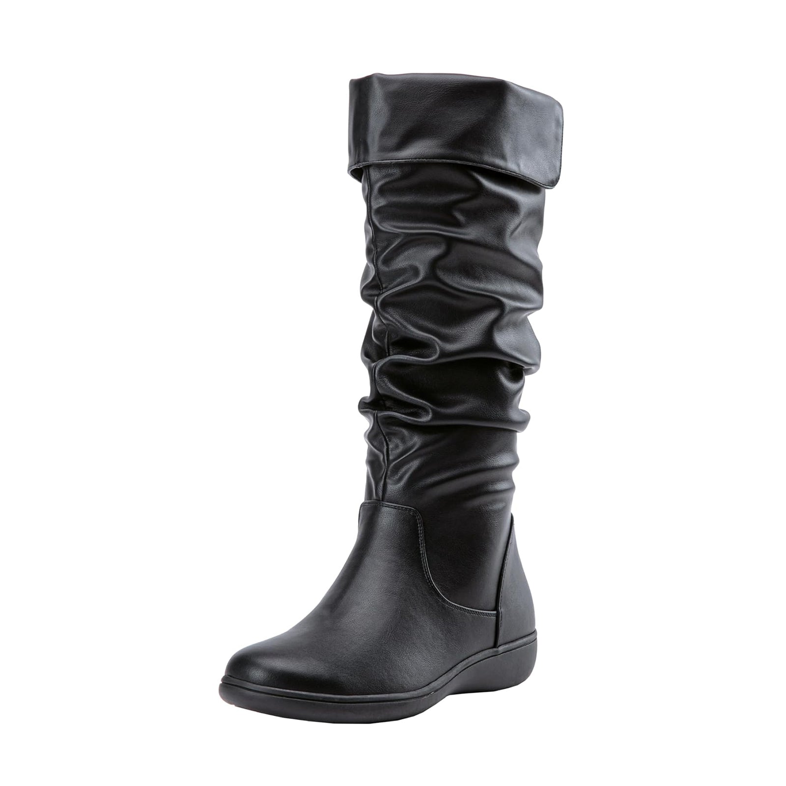 - Soft slouch boots knee-high slip on with round toe, effortless pull-on functionality looks fashionable and classic.
