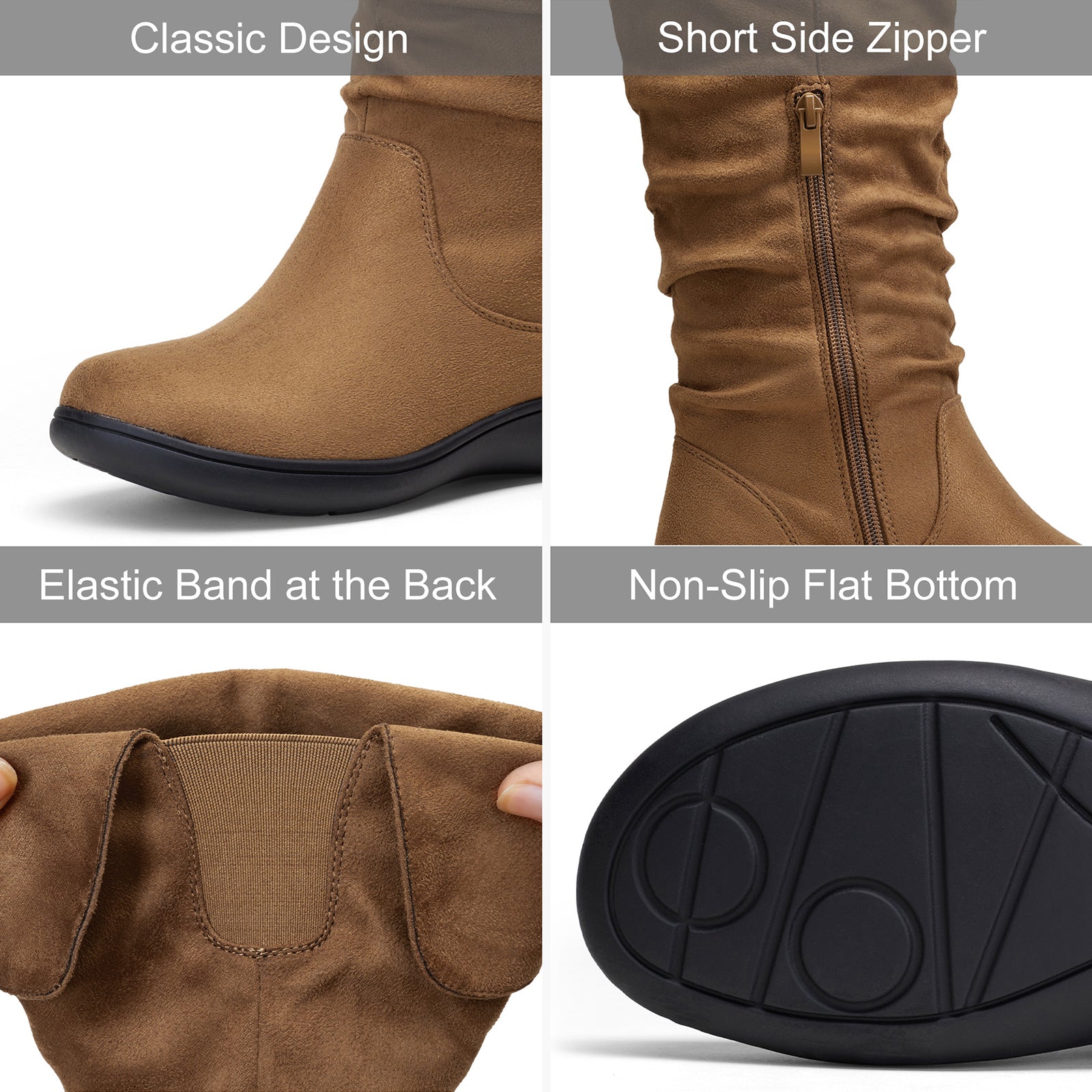 - Soft and comfortable suede uppers keep your feet warm and protect your legs without rubbing for long time walking. The fabric lining is soft and smooth which effectively improves the comfort of wearing and lessens your foot stress.