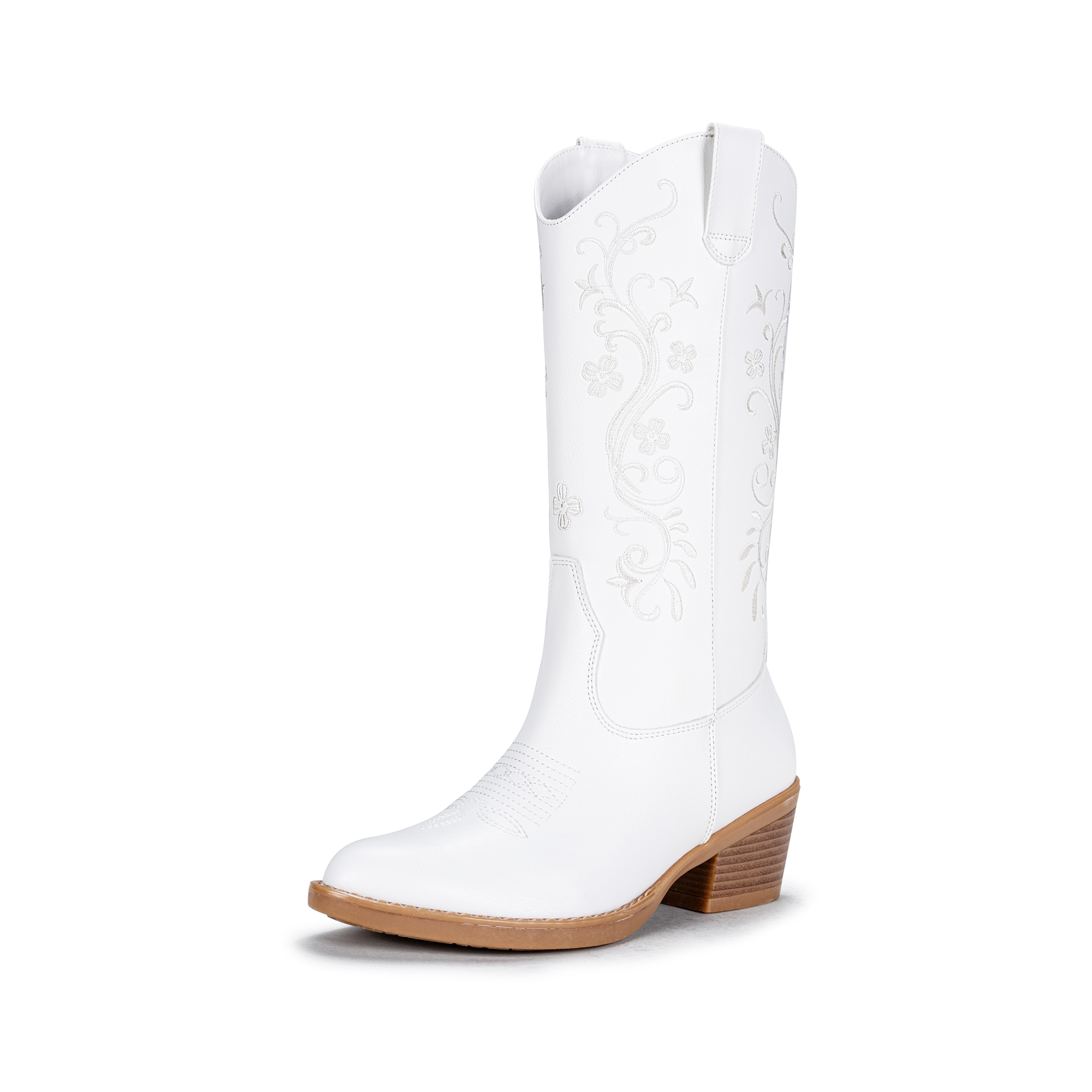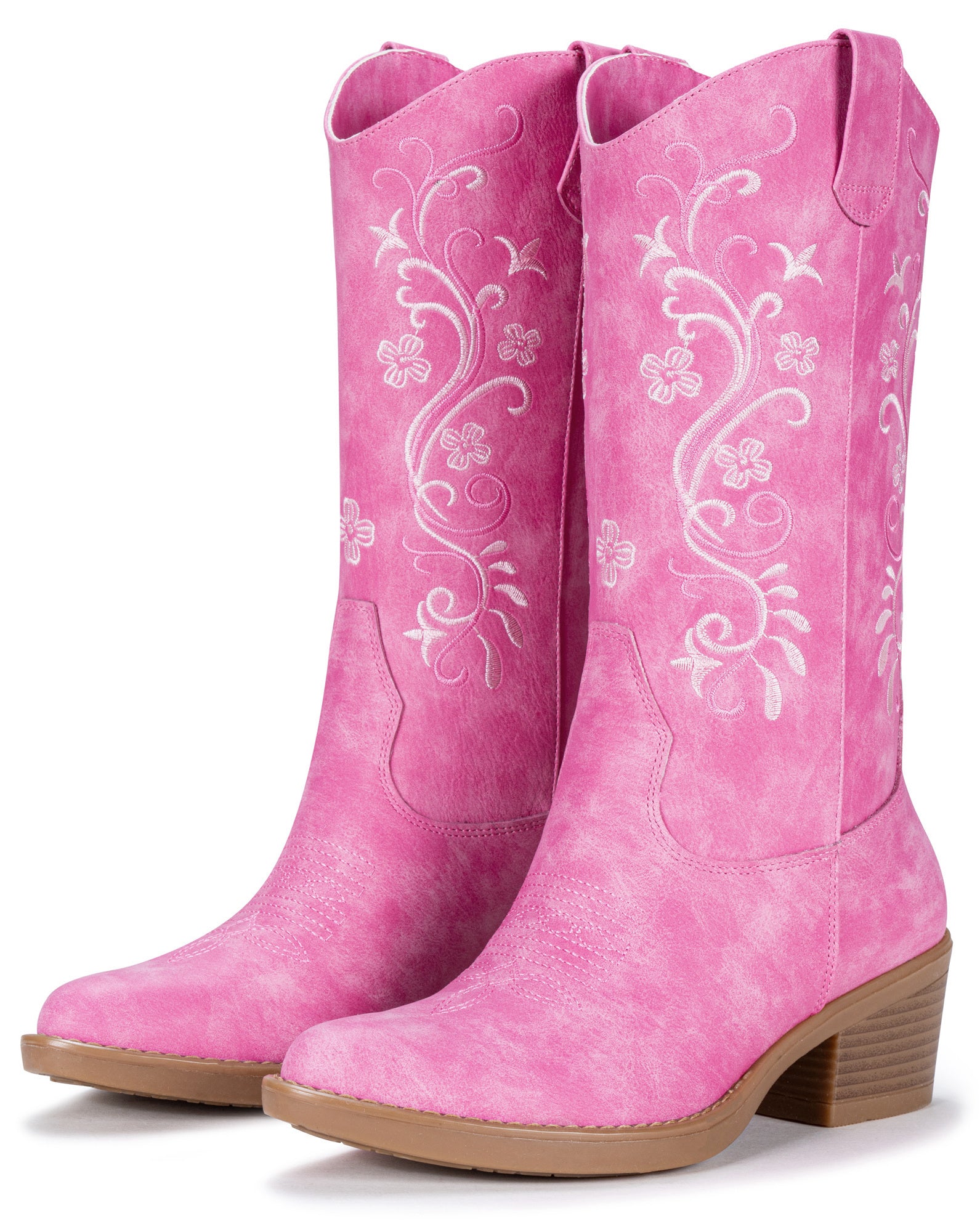 Vepose Women's Cowboy Boots, Embroidered Western Mid-Calf 9802 Cowgirl Boots, Pointed Toe Pull on Boots with Chunky Heel