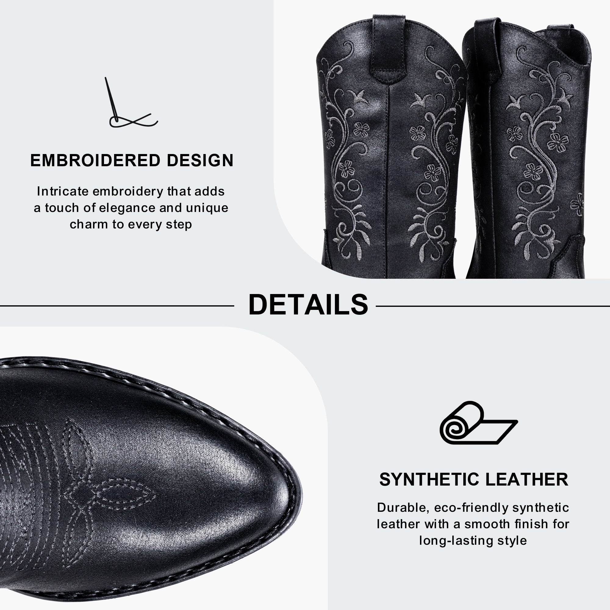 - Premium Synthetic Leather: Made with selected durable synthetic leather, these cowboy boots are breathable, soft, and built for durability to ensure long-term use and easy maintenance