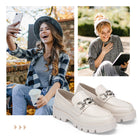 - Heel height: 1.5 inches, platform chunky heels comfort loafers make your feet comfortable to walk all day.