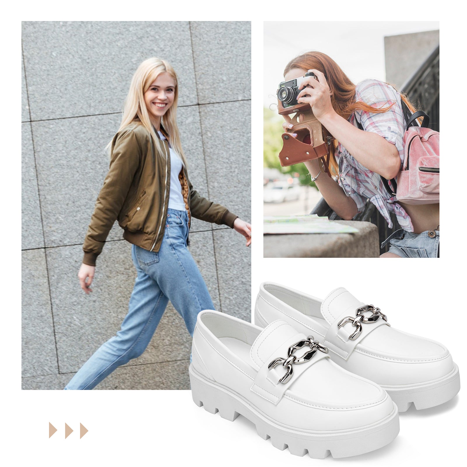 - Fashion loafers shoes are clothing matching formal wear, casual wear, jeans, and skirts. They are also suitable for various occasions such as travel, shopping, study, business, and work.