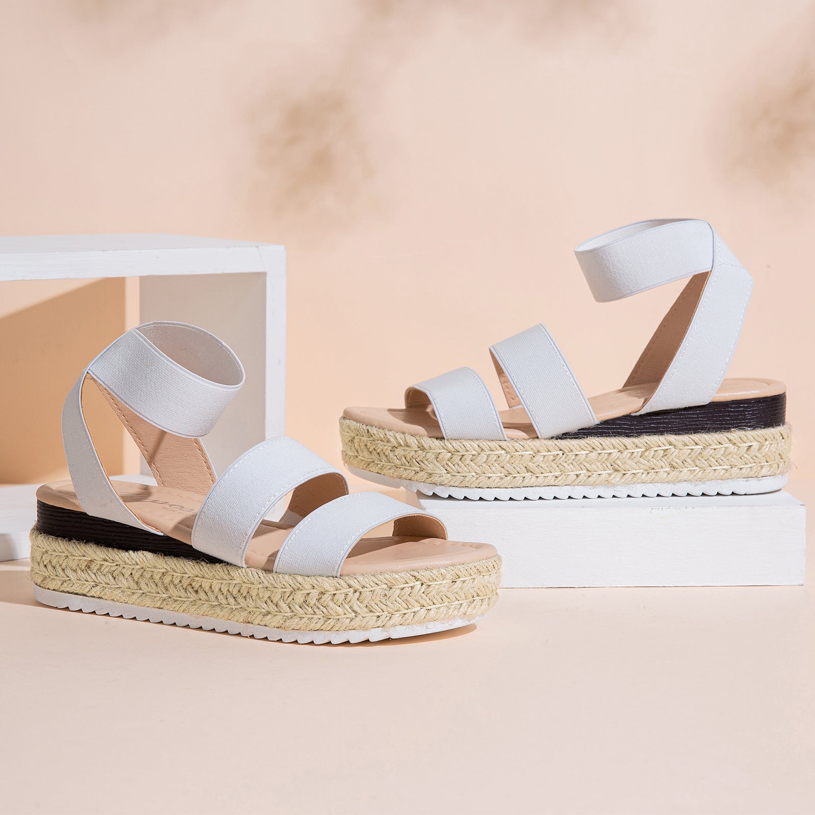 Vepose Women's 876 Double Elastic Strap Cute Sandal Open Toe Espadrilles Platform Wedge Sandals