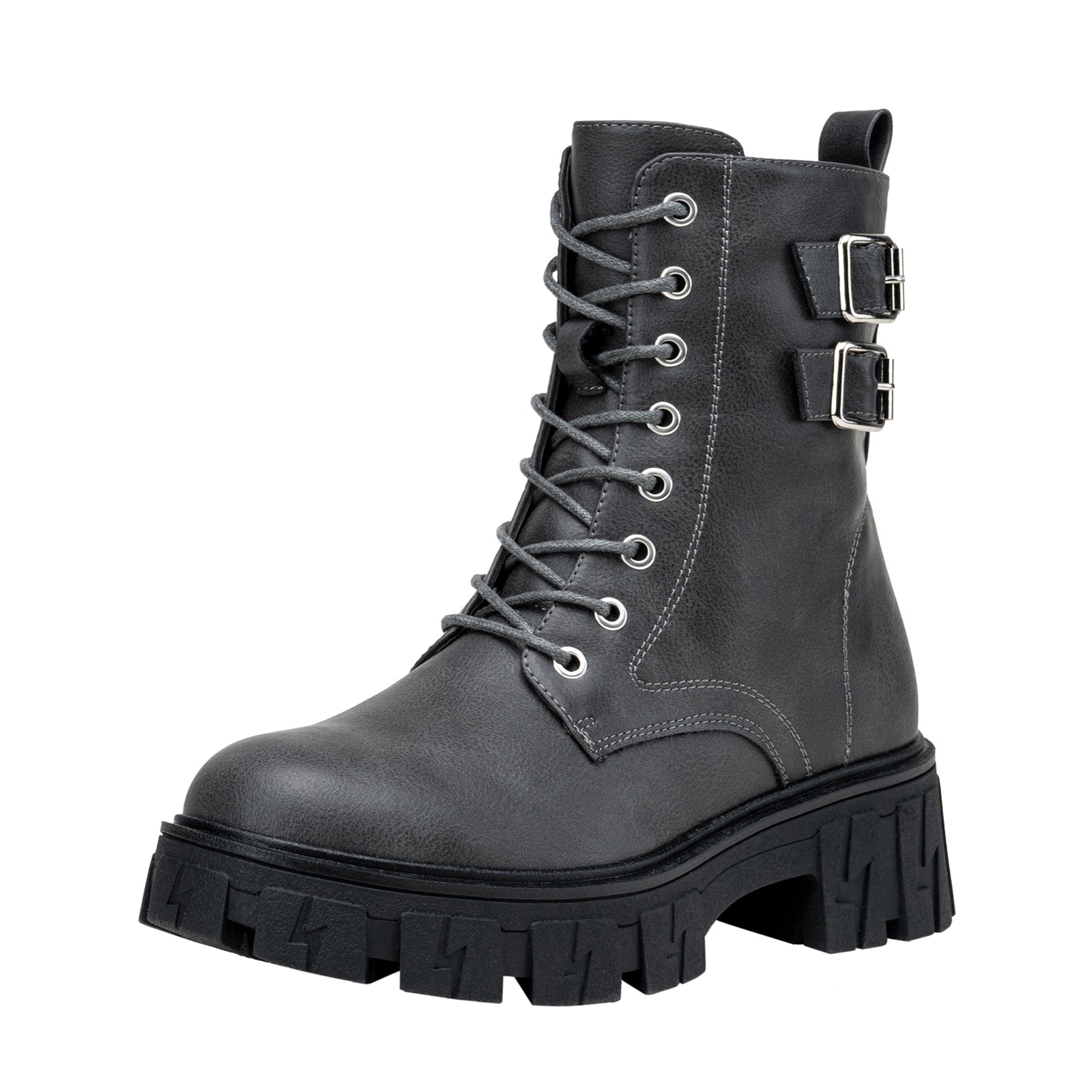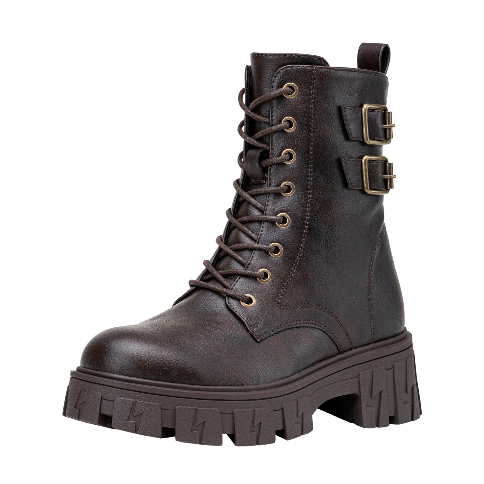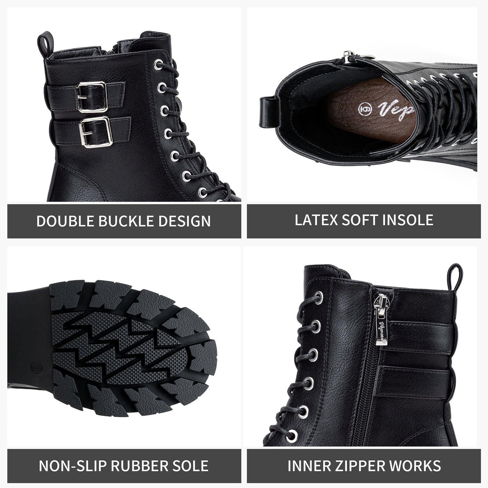 Vepose Women's 9612 Combat Boots, Platform Ankle Booties Lace-up Lug Sole Inner Zipper