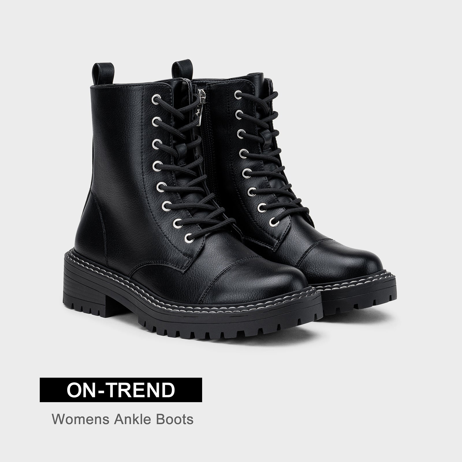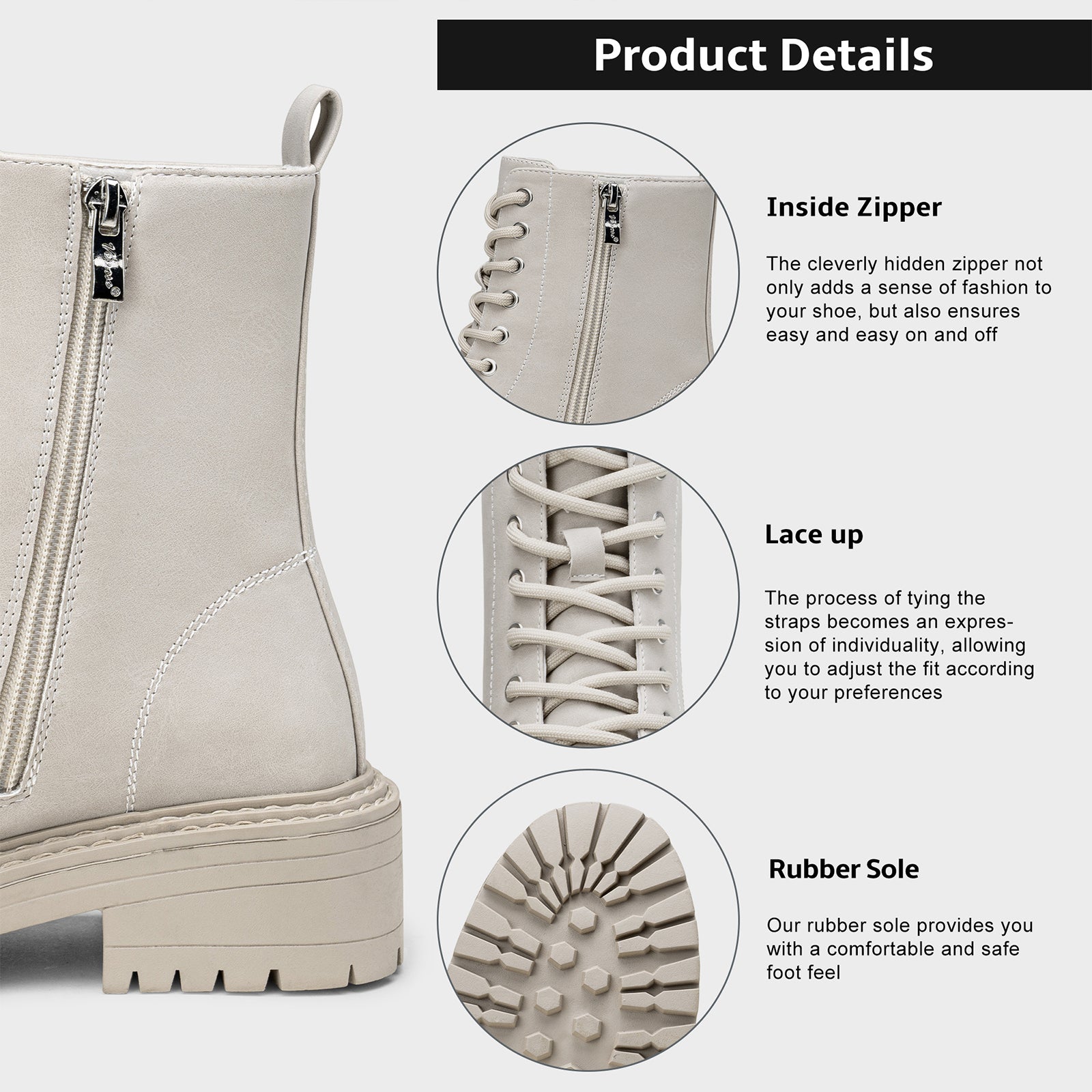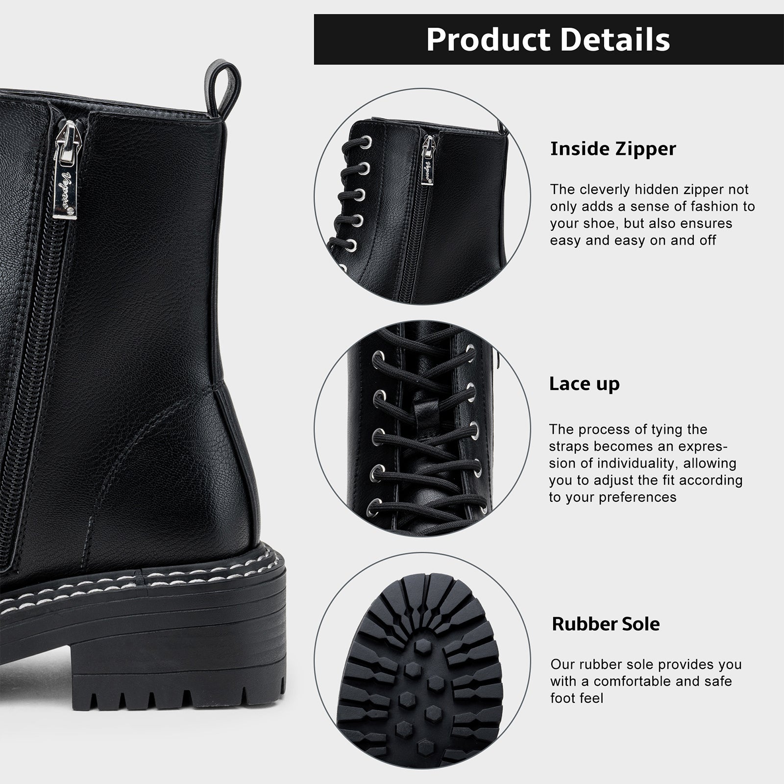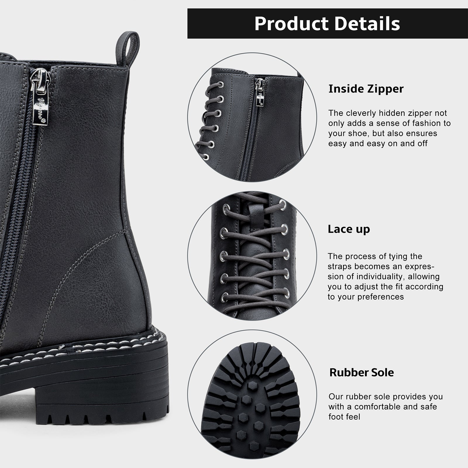 - 【Easy to wear】Casual combat ankle boots come with a lace up and side zipper design for easy on and off.