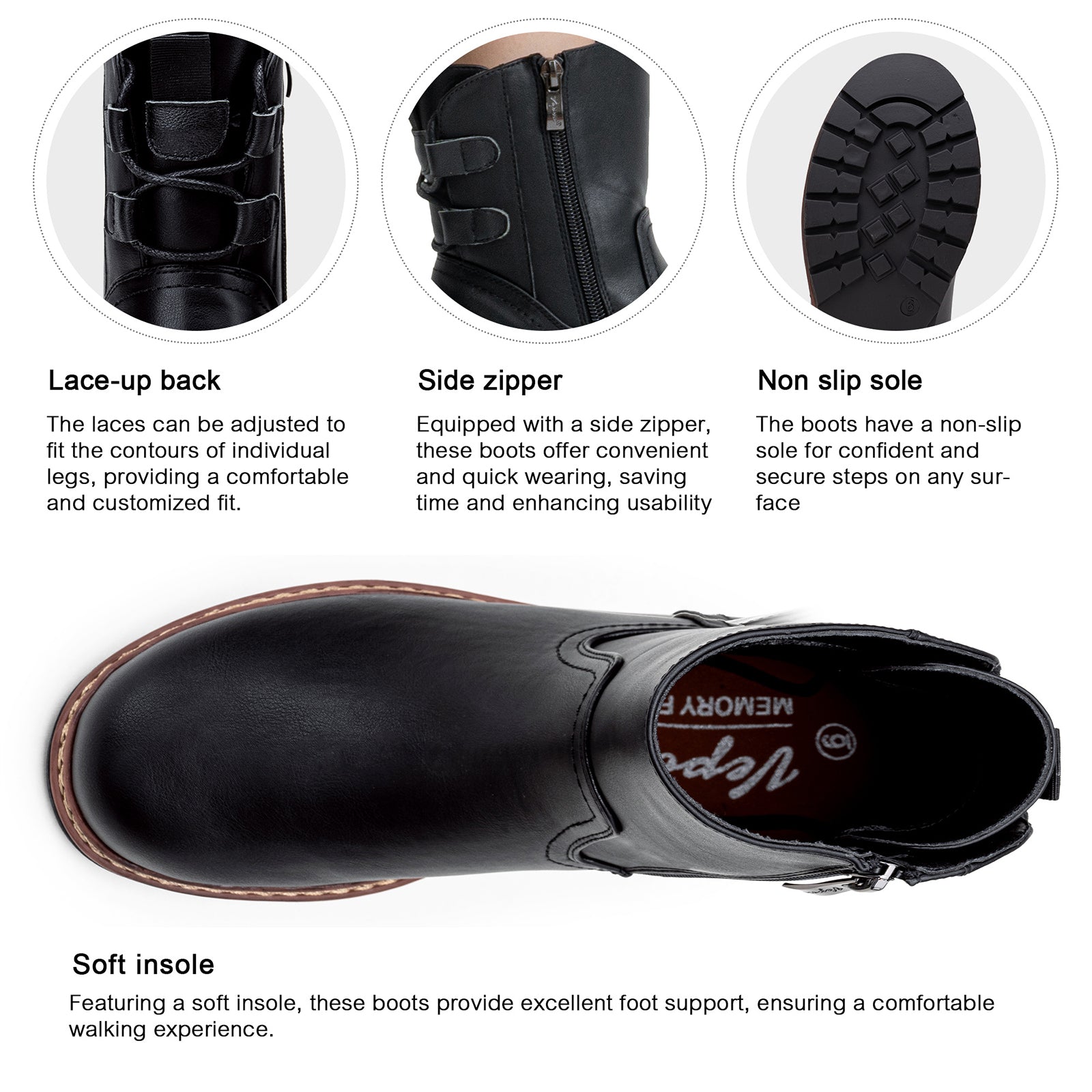 - Women's flat boots heel height is about 1.37"inches, very comfortable height.