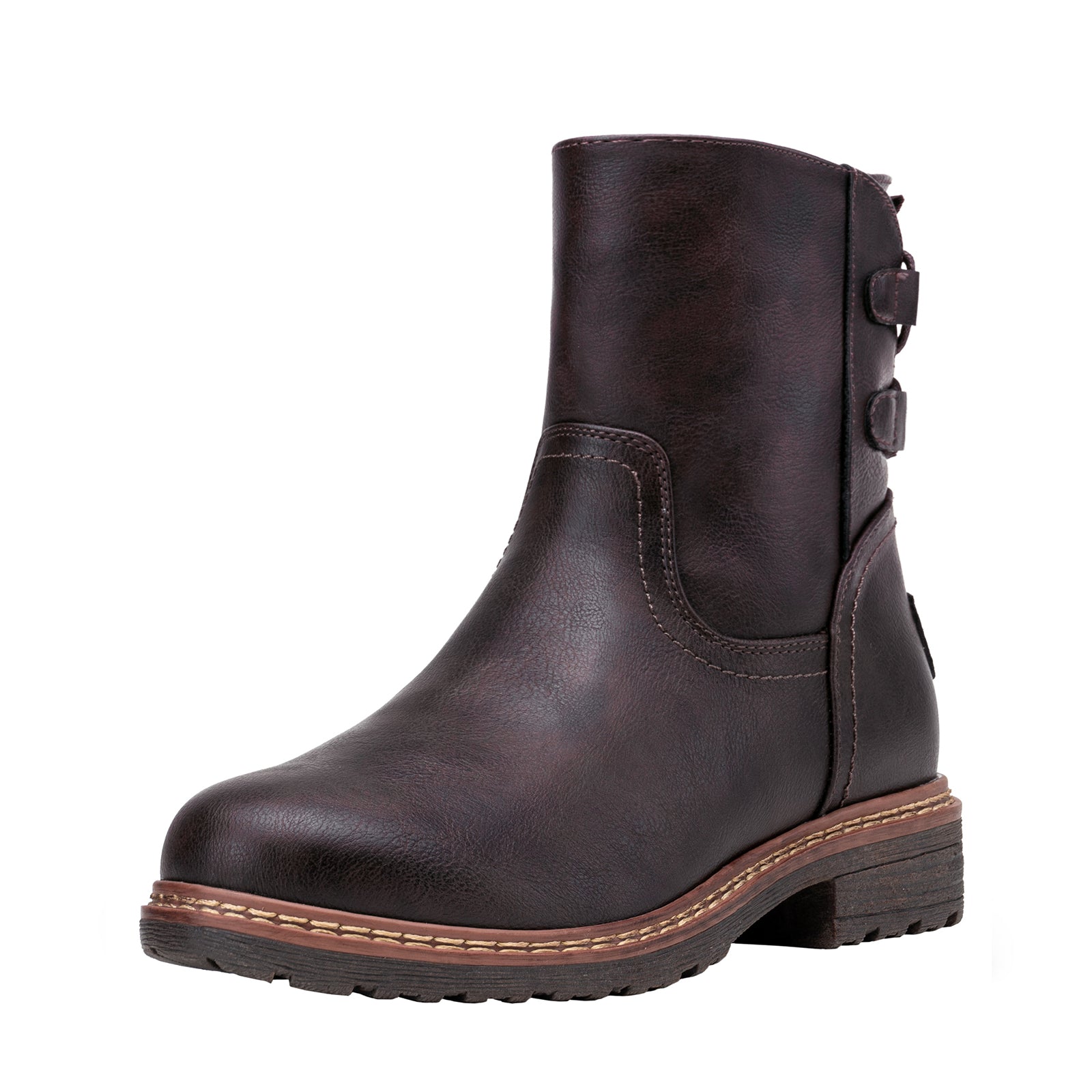 Vepose Women's 9680 Ankle Boots Low Heel Fashion Booties for Women with Lace-Up Back and Side Zipper